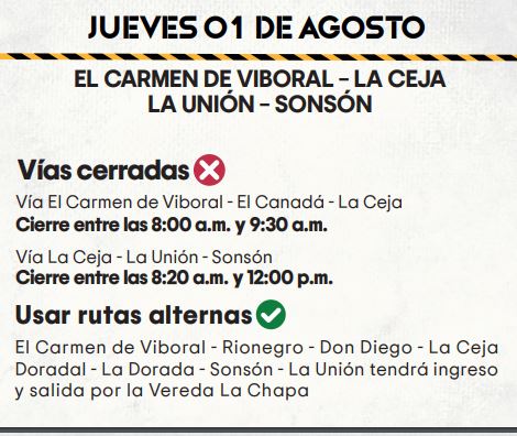 Creada en 1982 y llegando a su trigésima versión, desde este miércoles 31 de julio hasta el sábado 3 de agosto se llevará a cabo la Clásica Nacional de Ciclismo El Carmen de Víboral, con un recorrido aproximado de 305 km y recorrido por los municipios de Rionegro, La Unión, Sonsón, Cocorná, Granada, San Carlos, San Rafael, Guatapé, El Peñol, Marinilla y por supuesto El Carmen de Viboral. Les compartimos el cierre de vías: